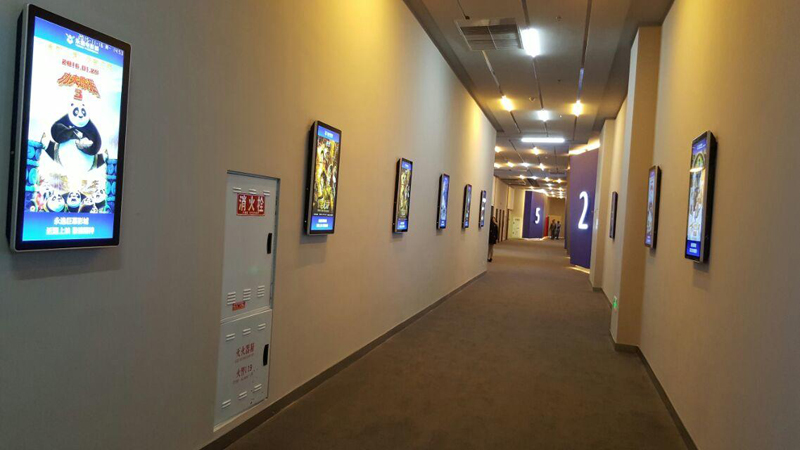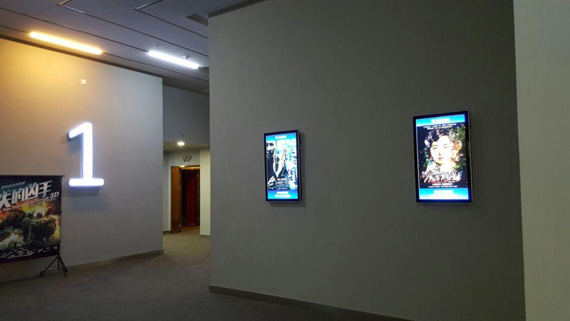 遂寧某電影院,為打造不一樣的看電影氛圍,宣傳新電影及電影上映時間等,新視銳根據客戶需求,采用一批豎式42寸廣告機,安裝在去往各個電影院內部走廊倆邊的墻面上的方案。通過廣告機播放著當日要播放的電影簡介以及大力宣傳即將上映的各種大片,為廣大喜愛電影的青年男女們可以提前做好選擇。
