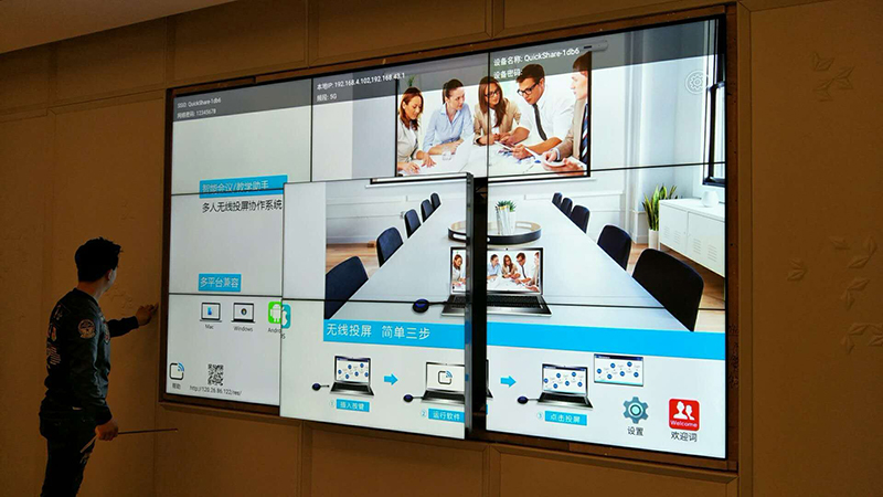 此工程所用材料由深圳市新視銳有限公司(www.mfgi.cn)獨家承制,其中包括: 液壓式前維護壁掛架,1進16出高清HDMI分配器,一線品牌HDMI工程信號線材,控制線材,電源線,三星46寸超窄邊3.5mm拼縫液晶拼接單元,無線投屏系統(tǒng)組件等。