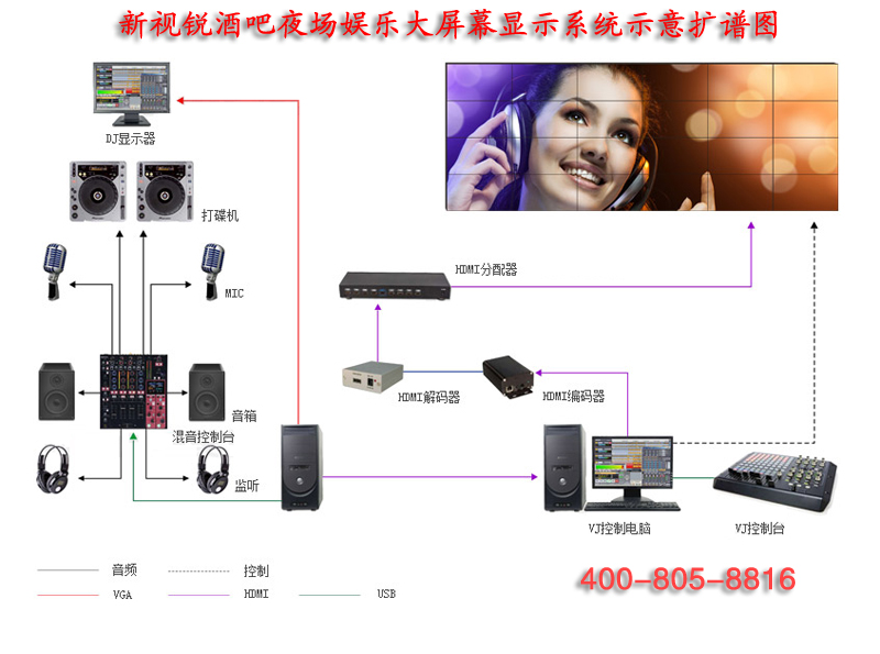 新視銳(XSR)酒吧夜場娛樂大屏幕顯示系統(tǒng)方案擴譜圖: